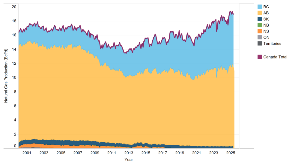 Alberta is the top-producing province, accounting for about 59.7 per cent of Canada's natural gas output in 2024.