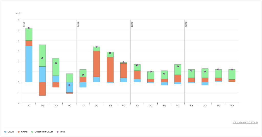 Despite the deceleration that is forecast, this level of oil demand growth remains largely in line with the pre-Covid trend, even amid muted expectations for global economic growth this year and increased deployment of clean energy technologies.